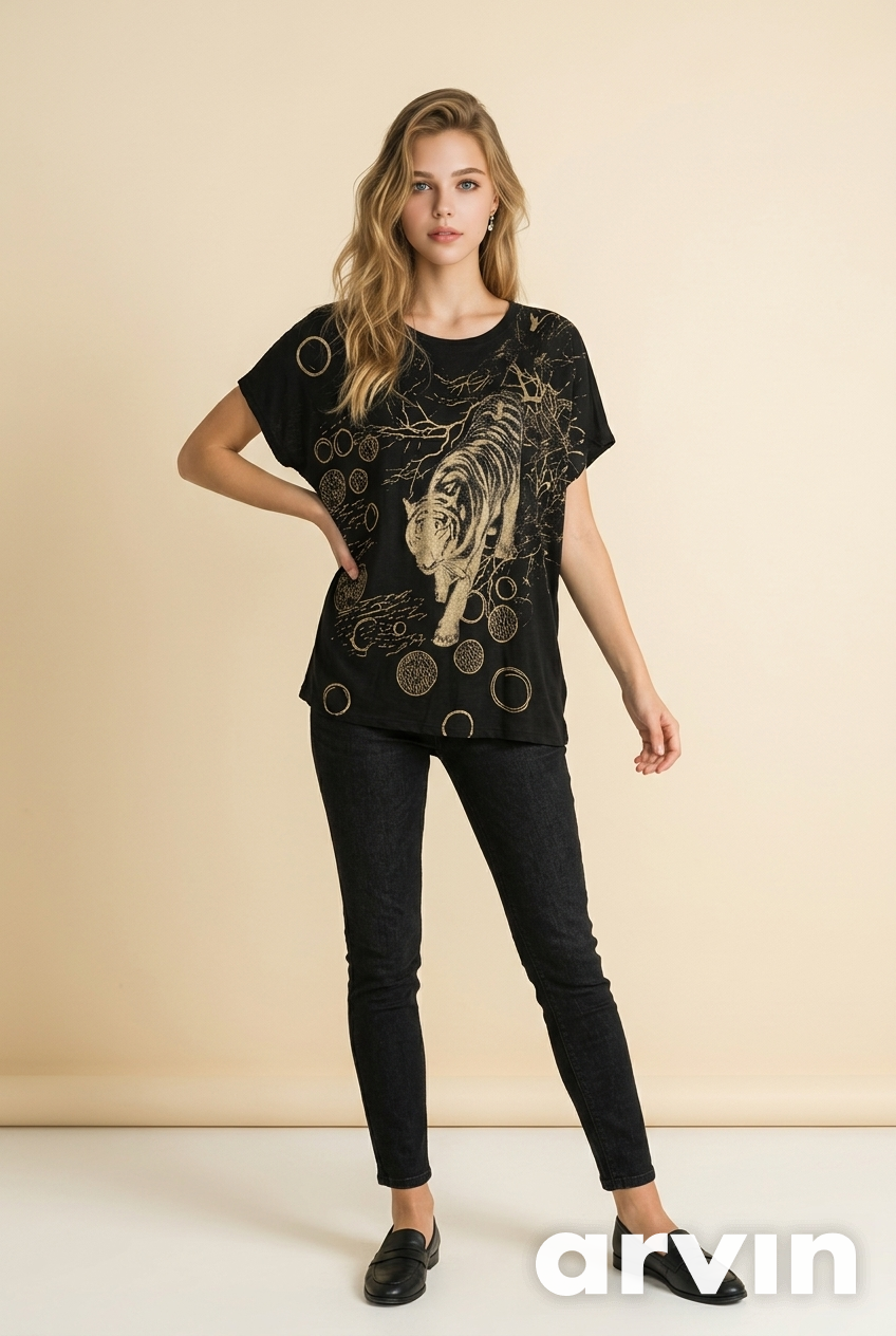 🖤 Statement T-shirt met Artistieke Tijgerprint